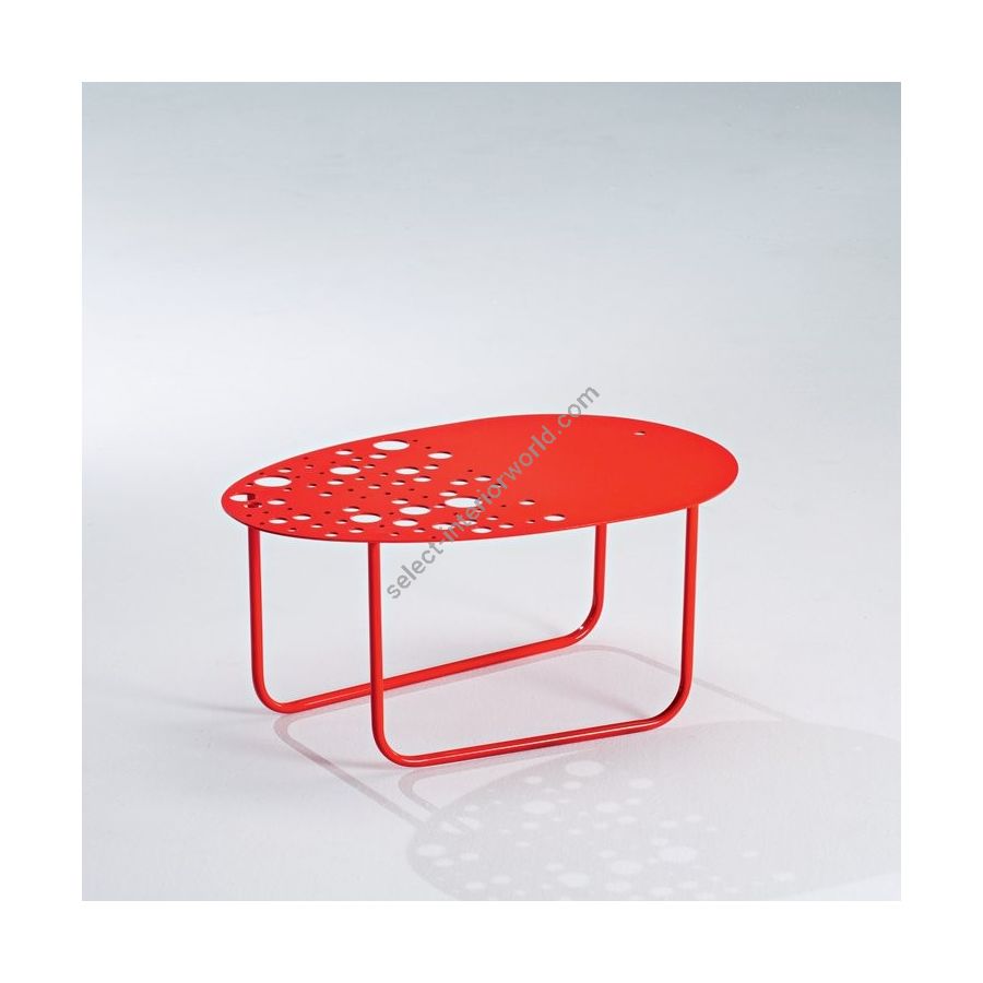 Characterised by a light tubular structure and a cut-out metal top, these furnishing accessories have a strong character that can fit into any type of environment, from minimalist to classic. Produced in many versions, both painted and unpainted, it is the latest must-have. Due to their small size, they are suitable for use as a single table in a lounge version or can be grouped together to form a large living room surface.