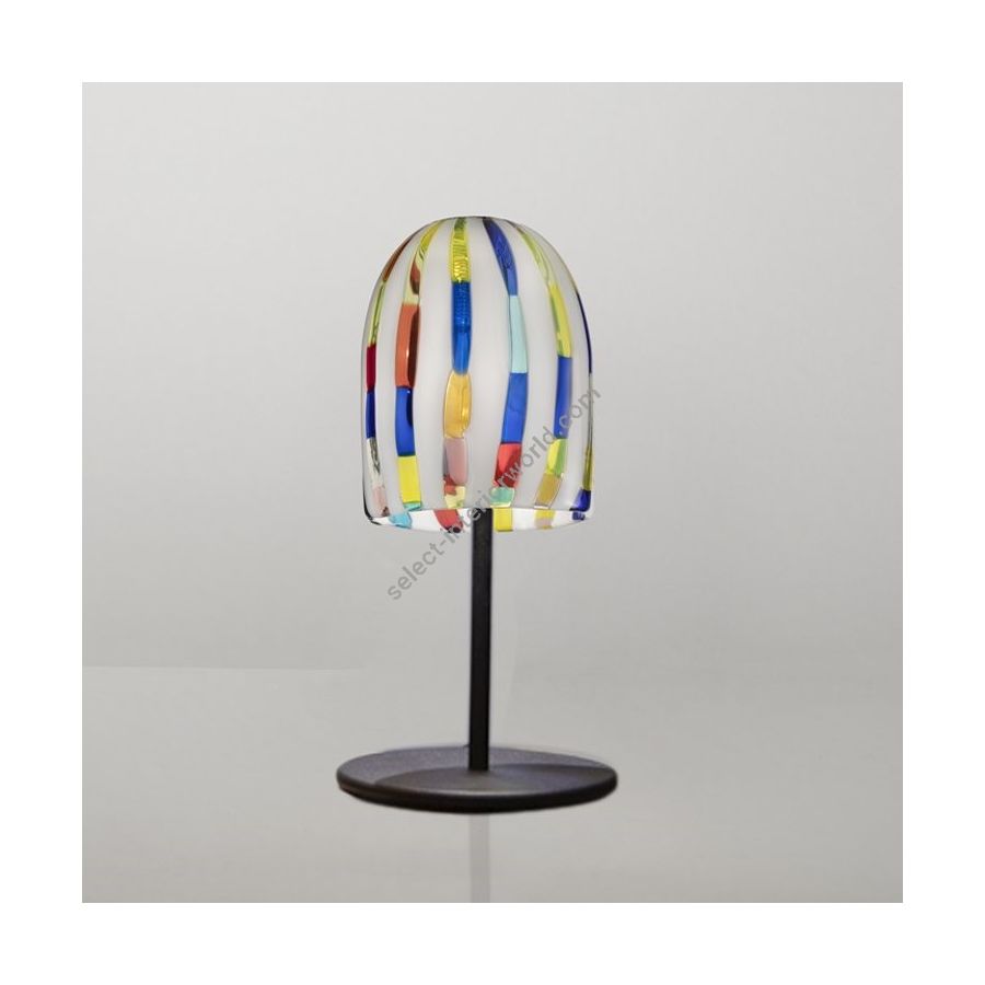 Nine types of textures enrich the simple shape of this bell, which always differs in its strokes and is achieved using an ancient decorative hot-melt technique that fuses rods with smooth threads of milky white or colored glass. Joyful individually, it becomes the perfect solution for custom projects with a highly creative look.
