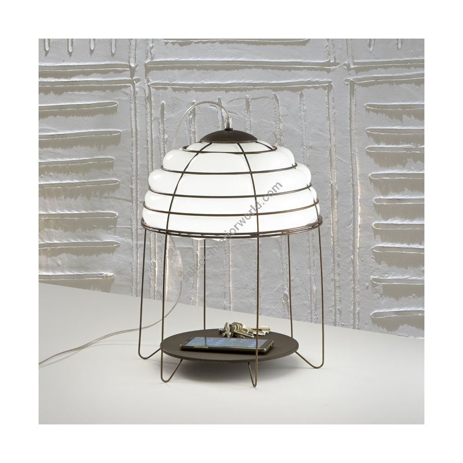Titti is a clear nod to the world of cartoons. This project by Francesca Smiraglia has resulted in a product that can symbolically capture light whilst representing the symbol of freedom that can simultaneously contain that which is precious and intangible. It is reminiscent of a micro space linking several functions, designed to manifest soft, diffused light through the colouring of the milk-white glass, blown within a wire structure, as a Venetian tradition and process that characterises Siru’s artisanal research.