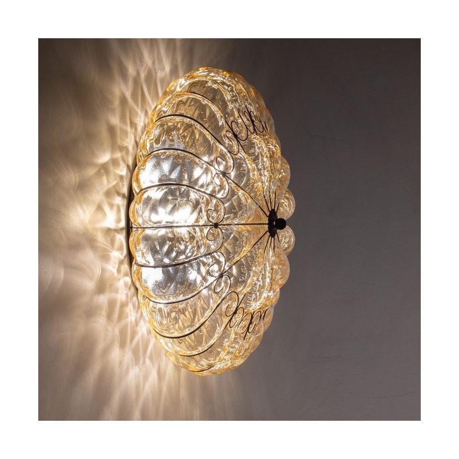Unsurpassed in generating fascinating refractions on the surfaces thanks to the processing of blown glass with balotton technique, both in the ceiling and in the wall version, Sole will be the center of your home.
