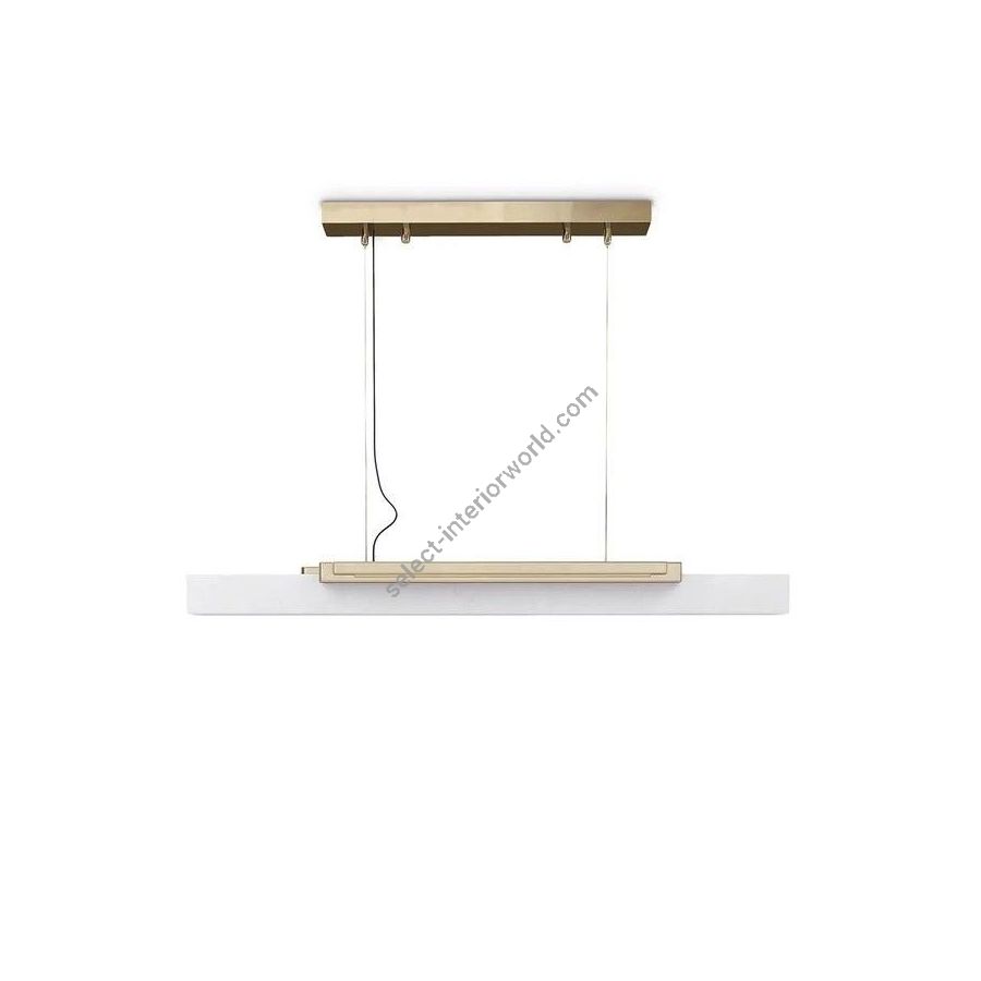 The Skyline Suspension Lamp captures the essence of the world's most iconic cityscapes. Inspired by the bold silhouettes of skyscrapers, this piece combines a linear brass frame with an alabaster structure that gently diffuses light, creating a warm and contemporary atmosphere. A striking statement piece that brings architectural rhythm into any interior.