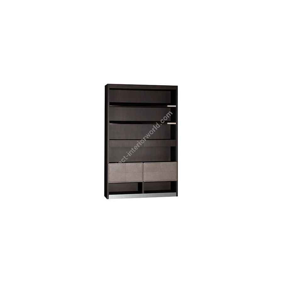 It stands out for the materials it is made up of: the wood with its unique grains creates the structure, while the shining metal and the soft leather are the absolute protagonists of the finishes. The bookcase presents sculptural traits, algid reflections and delicate colours thus matching with classic offices and living rooms that also contemplate modern style.