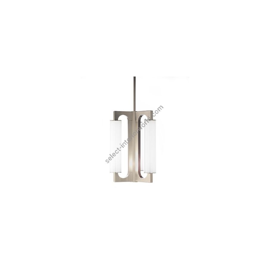 Roy is a chandelier characterized by refined and slim lines. The opal glass gives a clean touch that matches with the aesthetics of the metal reflections. These two materials blend together and give the room a strong personality.