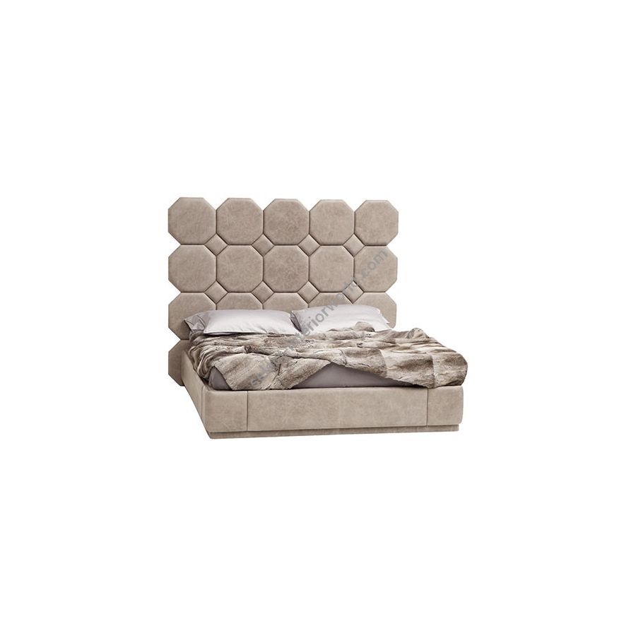 The ornamental power of Pascal 210 High is provided by the refined pattern of the headboard characterised by soft octagons and diamonds. The softness of the padding is an added value and embraces the bed perimeter as well.