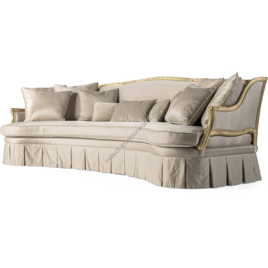 Seductive lines and precious details for the Eglantine collection. Its soft and welcoming shapes are embellished by a hand-carved profile with gold leaf finishing and by the ruching of the fabric that enriches the base. The perfect furniture for a luxurious and elegant setting, with a timeless style.