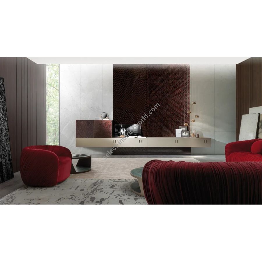 Modular and sectional system for the living area. Available in modules and compositions of different sizes, with custom accessories and integrated LED lighting.
