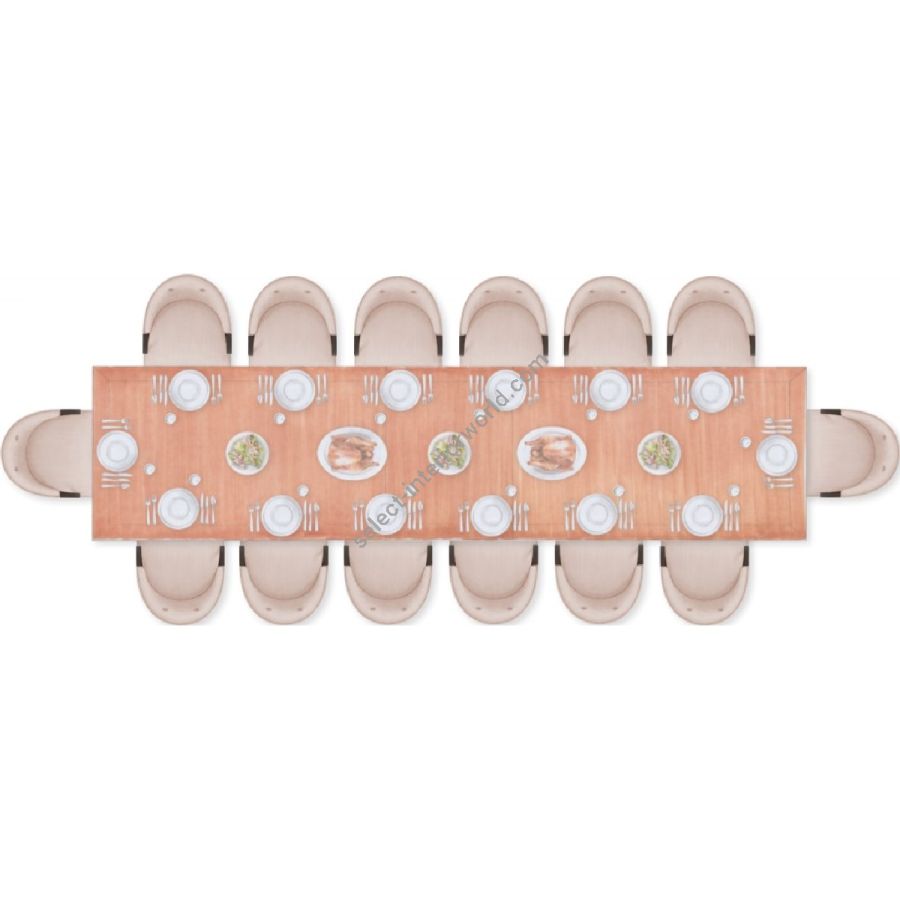 Certified Mahogany hardwood. Hand-Carved. Veneered Mahogany top. Inlaid veneer top. Two piece section table top for easy building access. 12-14 Seater Table. Available in a selection of outstanding Standard and Premium finishes. For residential use only. Commercial use is classified as Special Order Design (SOD), and alternative materials may be required. Contact us for details.