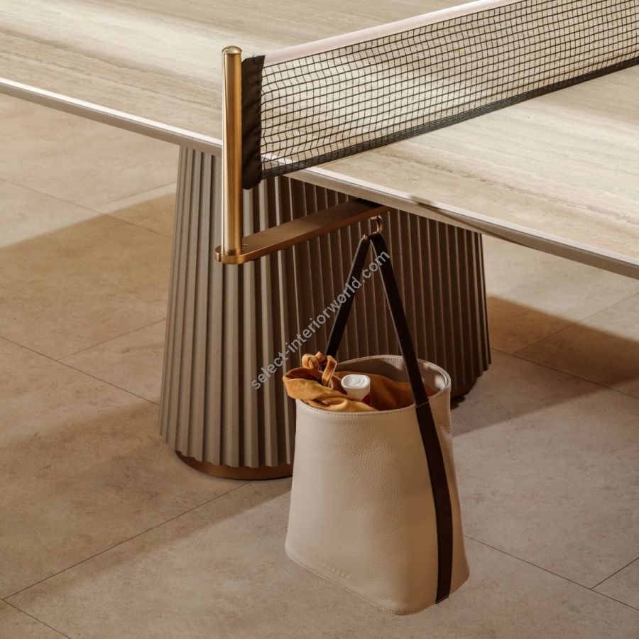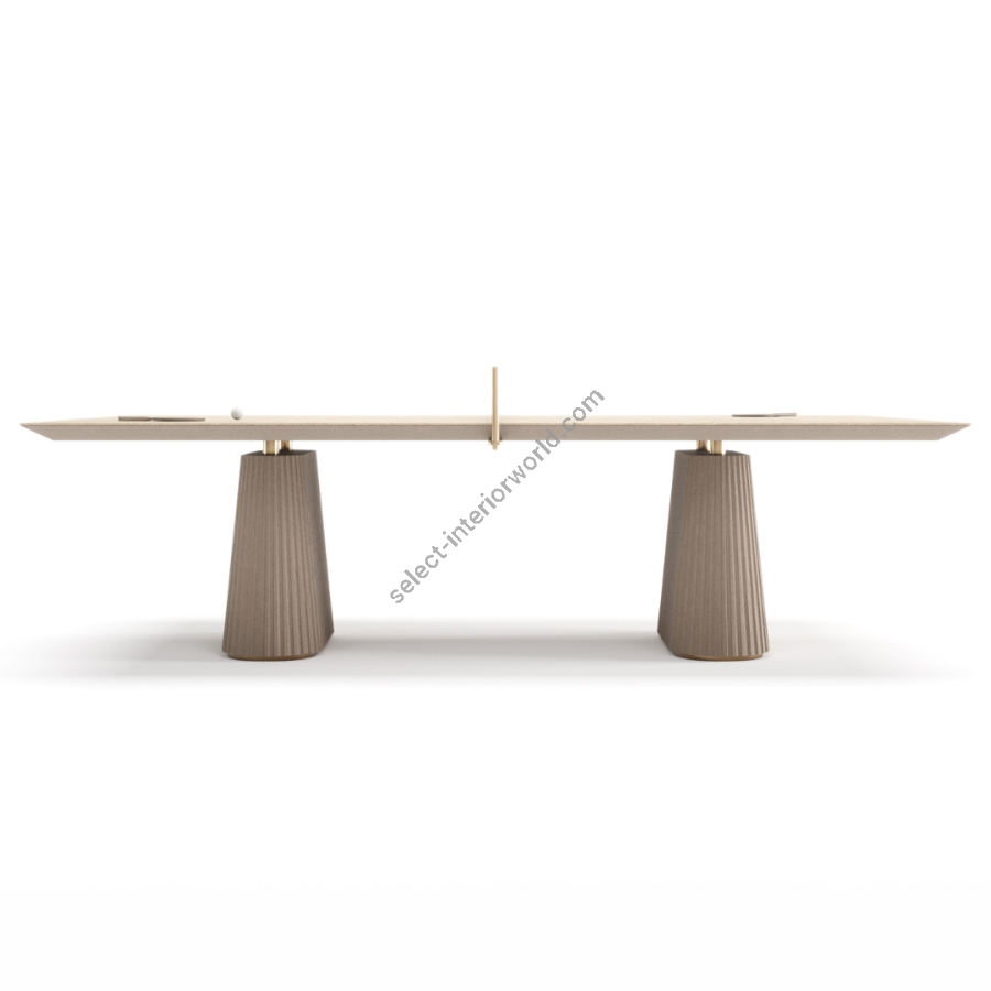 The legs are beautifully crafted in fluted resin, coated with a concrete effect lacquering, recalling greek columns pattern. The game net can be easily removed, transforming the table in a dining/conference one.