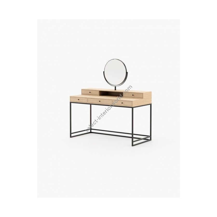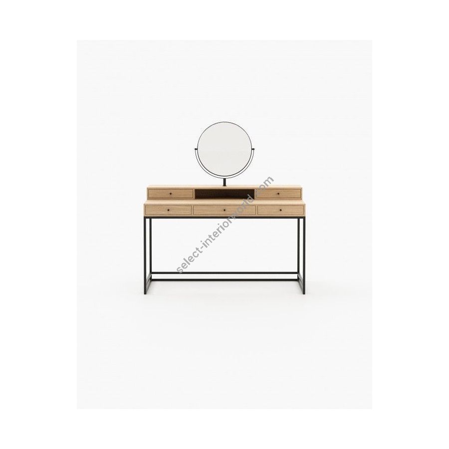 D'Arc dressing table features five drawers, one round mirror and a large surface area to make sure you will have everything in hand for your beauty routine. Built-in smooth wood and striking metal, this is the perfect piece for a feminine bedroom with a sophisticated aura.