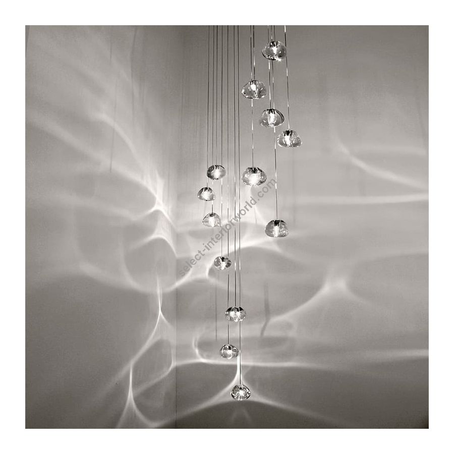 Inspired by the tranquil and mesmerizing light refractions created by water, Mizu is a customizable pendant light from Terzani. Like water droplets, no two Mizu are alike, each crystal shape is unique and made meticulously by hand. Using only the clearest crystal, Mizu perfectly emulates water’s refraction of light, casting amazing patterns around the room, reminiscent of flowing water. Available in clear, silver dust, gold, cognac and champagne finish.