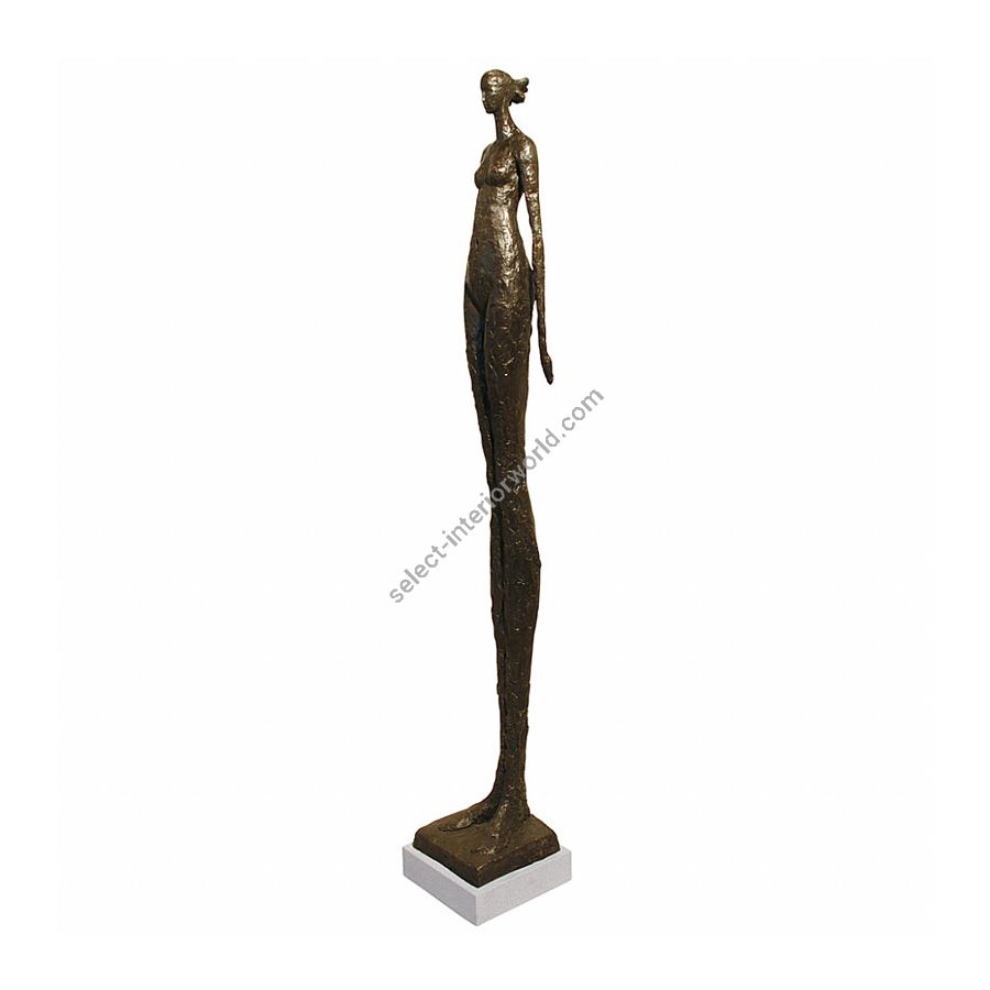 The tall sculpture Woman I by Tom Corbin is made of bronze with light grey granite base.
