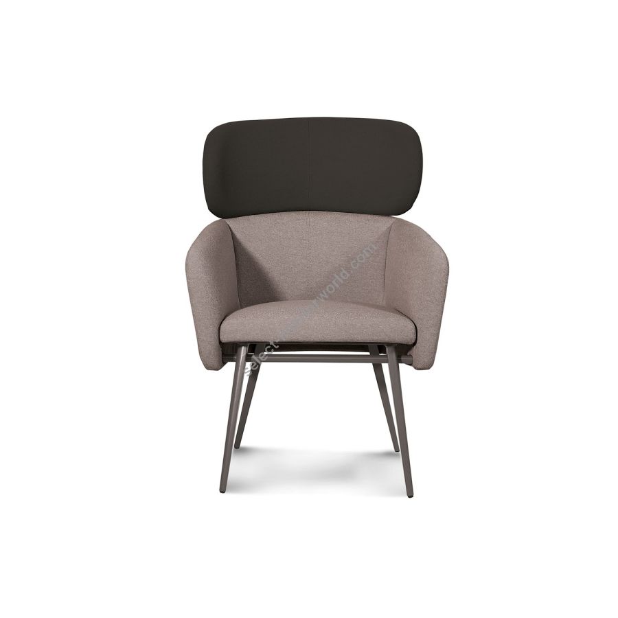 The deep, rounded seat encourages relaxation and conversation. The perfectly balanced volume of the body matches impeccably with the characteristic support frame, thus redefining the typical 'tub' chair. The internal plywood body and the polyurethane and Dacron upholstery, flanked by a beech frame, provide excellent comfort. Balù comes in many colour variations and neutral or tone-on-tone shades, in line with the collection colours.Balù is a reassuring presence and a perfect addition to an imposing dining area with a keen eye for design. This versatile seat can be used in any space, such as meeting rooms, small conference rooms and reading rooms, as well as domestic environments such as living rooms, study areas and bedrooms, which require performance combined with comfort and a strong personality.The Balù chairs, available in a variety of finishes and upholsteries, may be freely combined together, both at home and in public areas.
