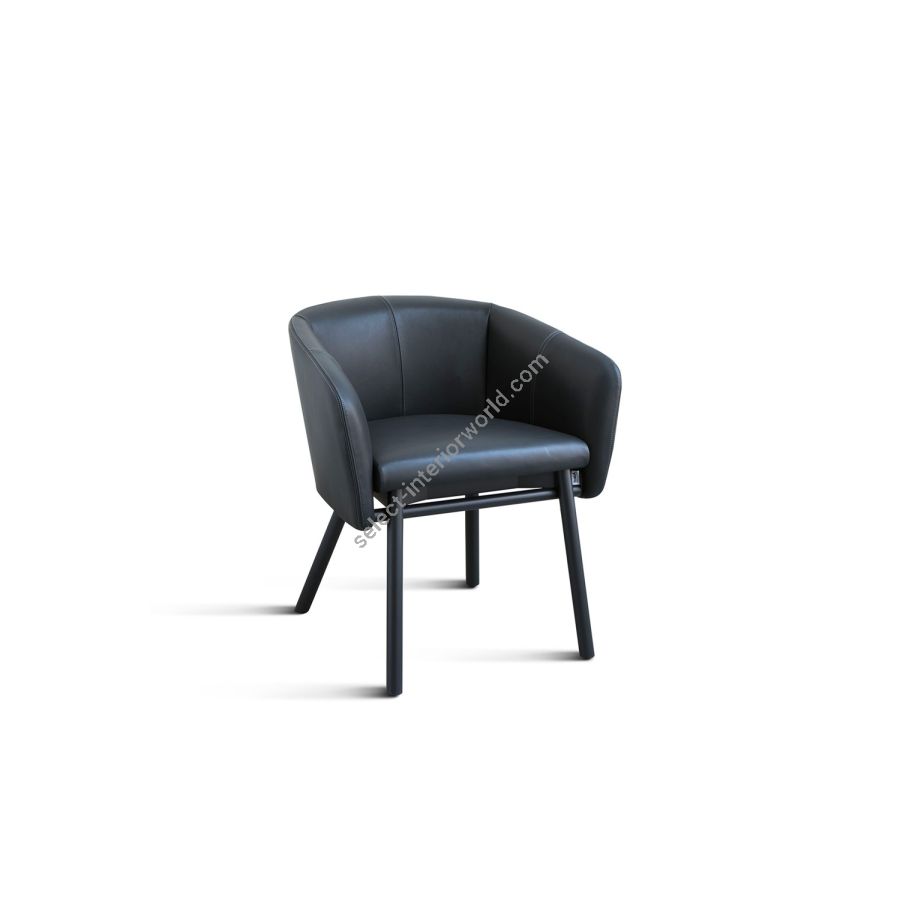 The deep, rounded seat encourages relaxation and conversation. The perfectly balanced volume of the body matches impeccably with the characteristic support frame, thus redefining the typical 'tub' chair. The internal plywood body and the polyurethane and Dacron upholstery, flanked by a beech frame, provide excellent comfort. Balù comes in many colour variations and neutral or tone-on-tone shades, in line with the collection colours.Balù is a reassuring presence and a perfect addition to an imposing dining area with a keen eye for design. This versatile seat can be used in any space, such as meeting rooms, small conference rooms and reading rooms, as well as domestic environments such as living rooms, study areas and bedrooms, which require performance combined with comfort and a strong personality.The Balù chairs, available in a variety of finishes and upholsteries, may be freely combined together, both at home and in public areas.