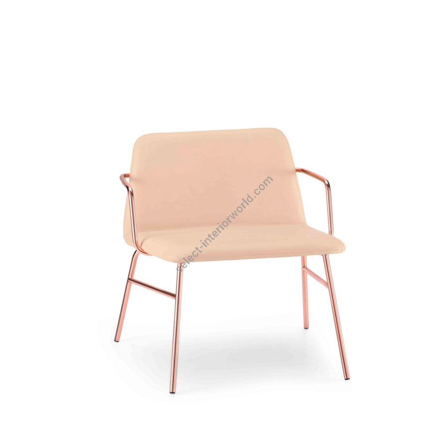 BARDOT MET stands out for its elegance and brightness, extending its style to include new frames, pastel and vibrant shades, and refined, contemporary finishes. The frame of the new chair and stool is lighter, through the use of clean-lined, metal rod legs. The armchair also features a new frame, fitted either with metal rod or padded armrests for greater comfort. The new lounge chair, with its more generous dimensions, fits gracefully into public environments, such as bars, restaurants, halls, waiting rooms, and informal meeting rooms.