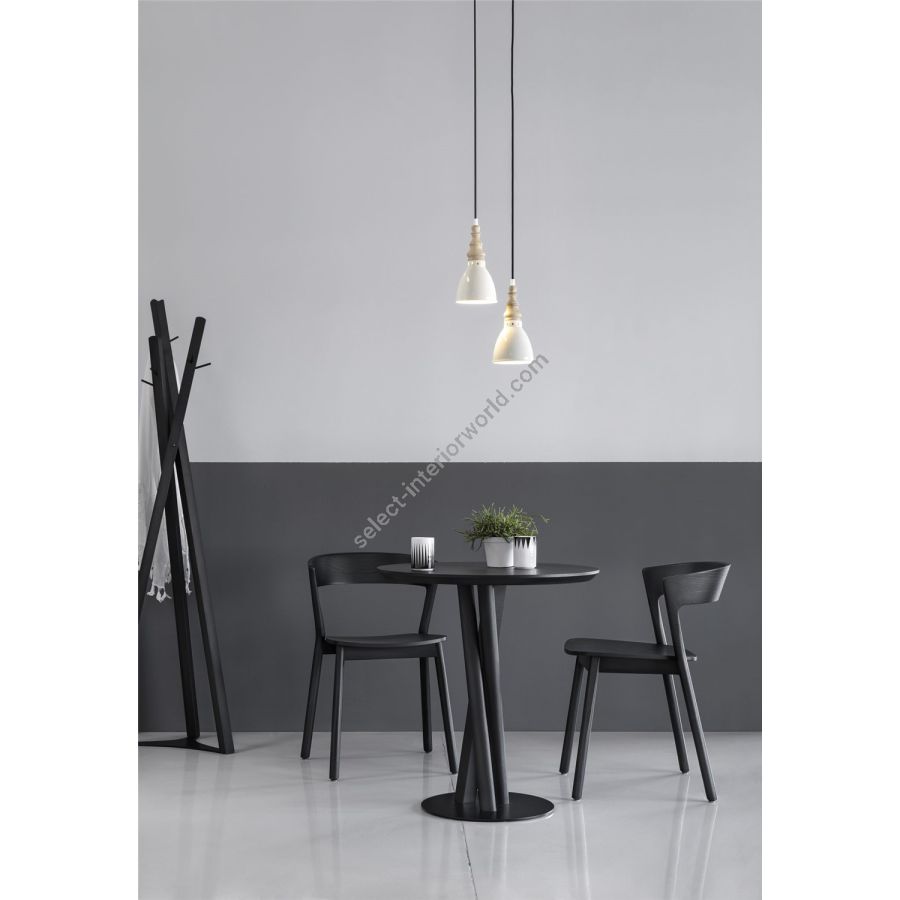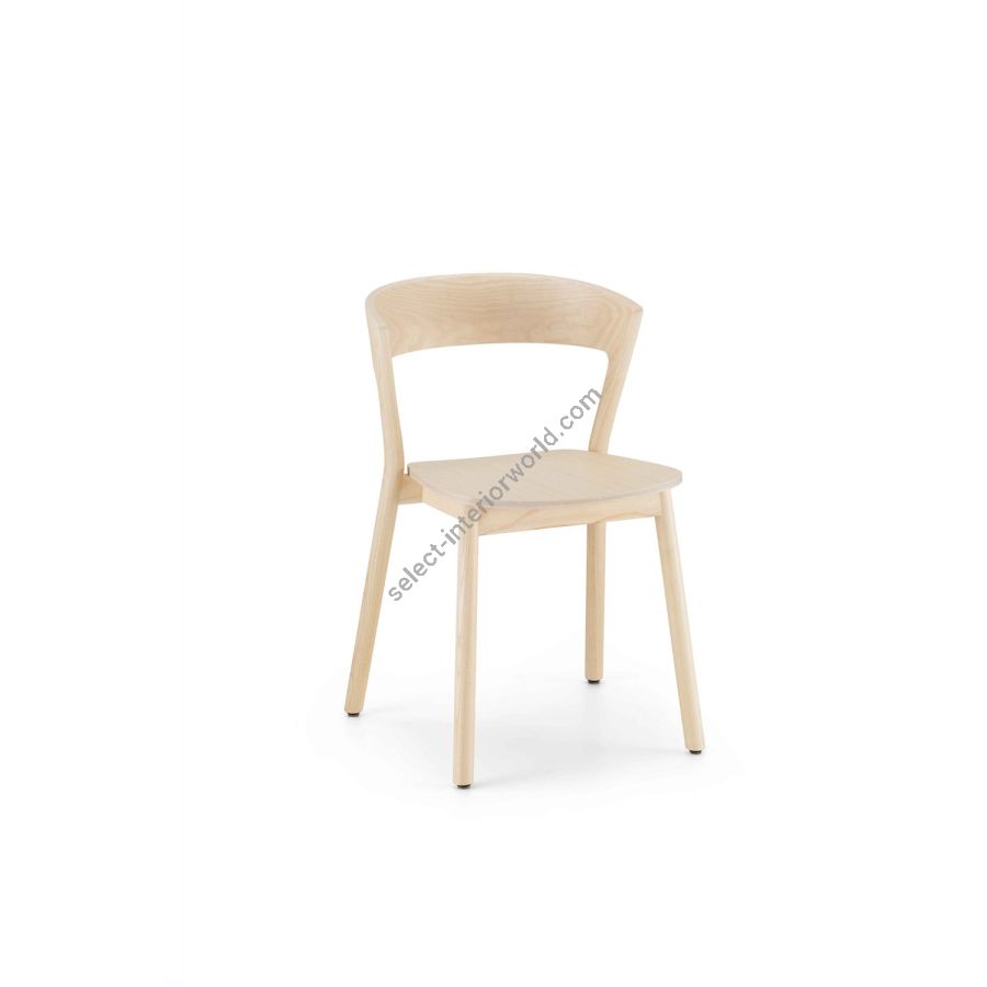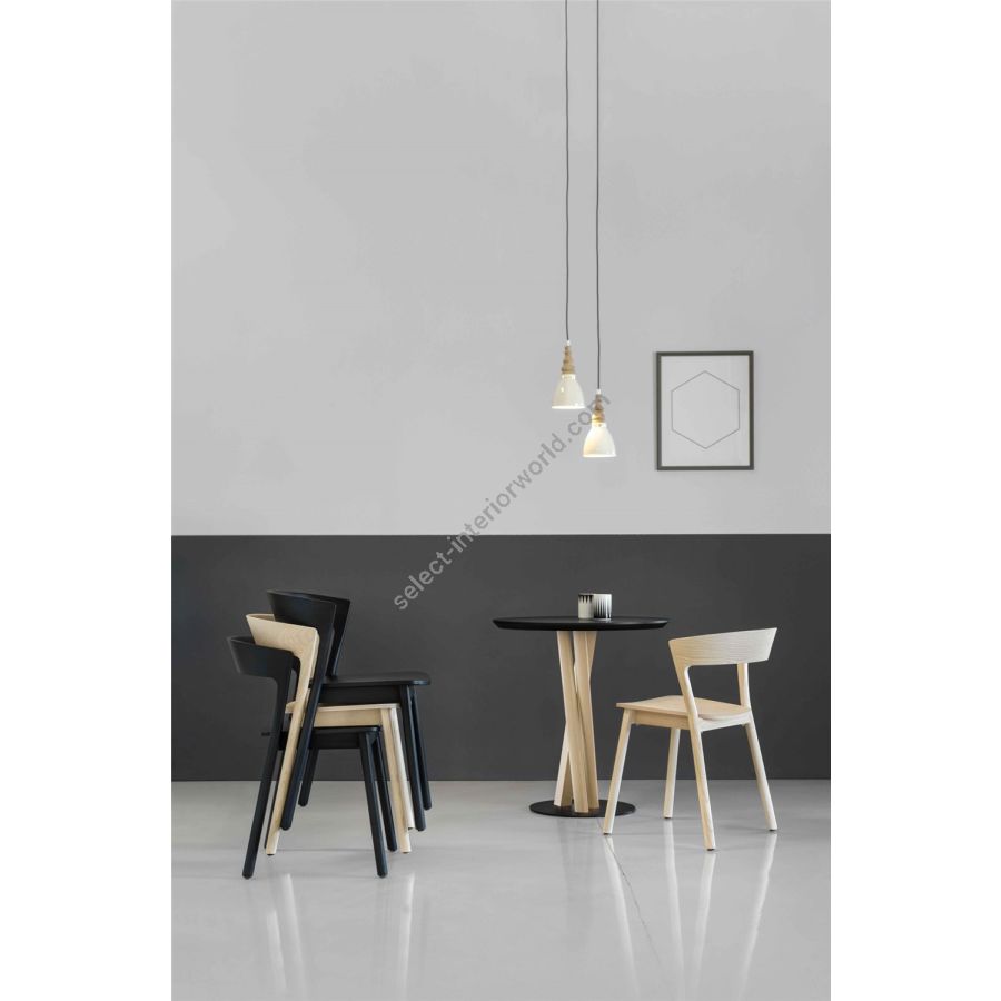 With this project, Traba’ launches the collaboration with designer Massimo Broglio, who, for the Salone del Mobile 2017, has created a stackable (or non-stackable) chair with a cross structure made from beech and ash with legs featuring a circular section that narrows at the ends.