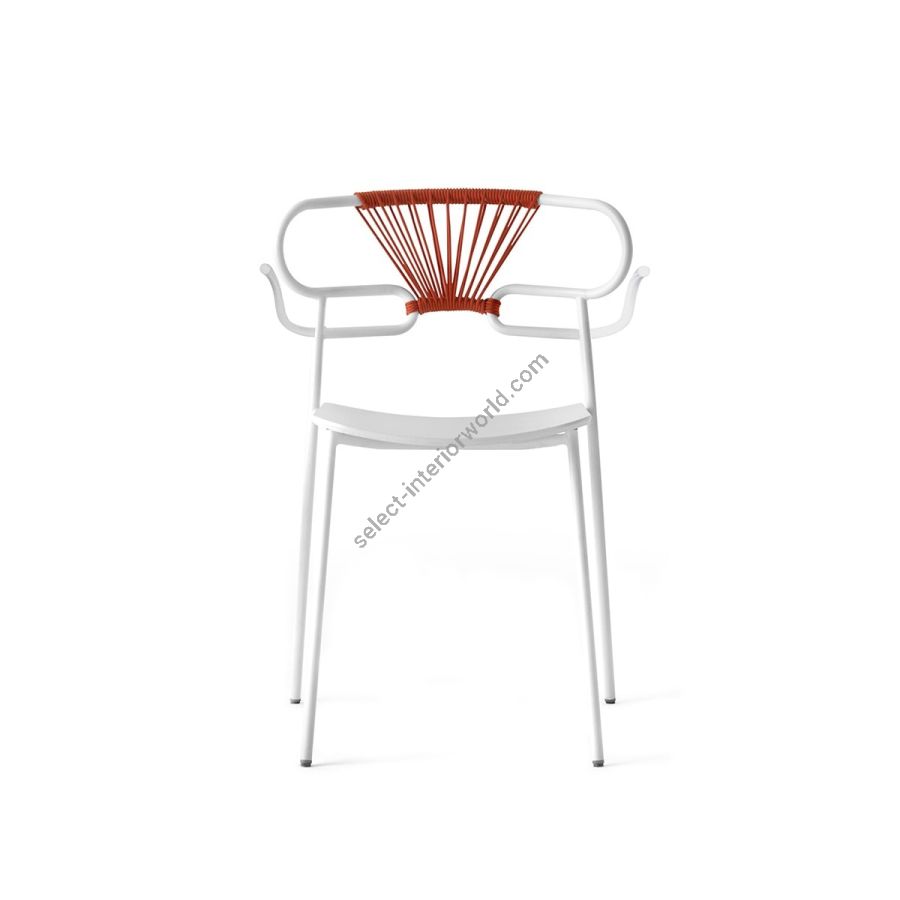 The Genoa chair collection, by talented young designer Cesare Ehr, featuring a stool and a chair with armrests, is also available in an outdoor version. The distinguishing element is the ‘one-line’ backrest, obtained by curving a single metal tube which - with its virtually endless wavy line, also extended to the armrests in this new version - is an elegant addition to every space, bringing a sense of lightness.