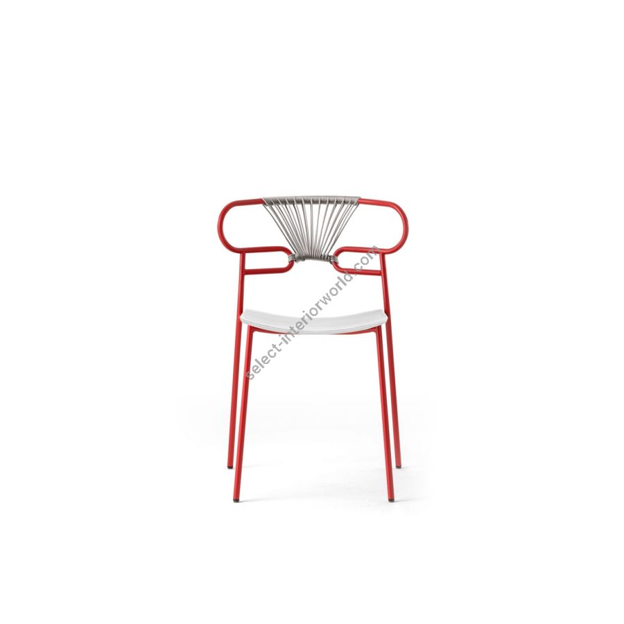 The Genoa chair collection, by talented young designer Cesare Ehr, featuring a stool and a chair with armrests, is also available in an outdoor version. The distinguishing element is the ‘one-line’ backrest, obtained by curving a single metal tube which - with its virtually endless wavy line, also extended to the armrests in this new version - is an elegant addition to every space, bringing a sense of lightness.