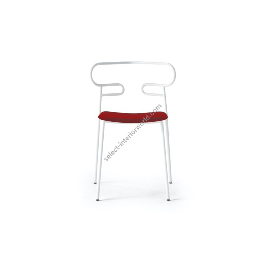 The powder-coated metal tubular structure is available in a wide range of colors; the slightly curved seat - for the indoor versions - is in ash wood (natural or painted), or padded with different fabrics, leather or eco-leather.