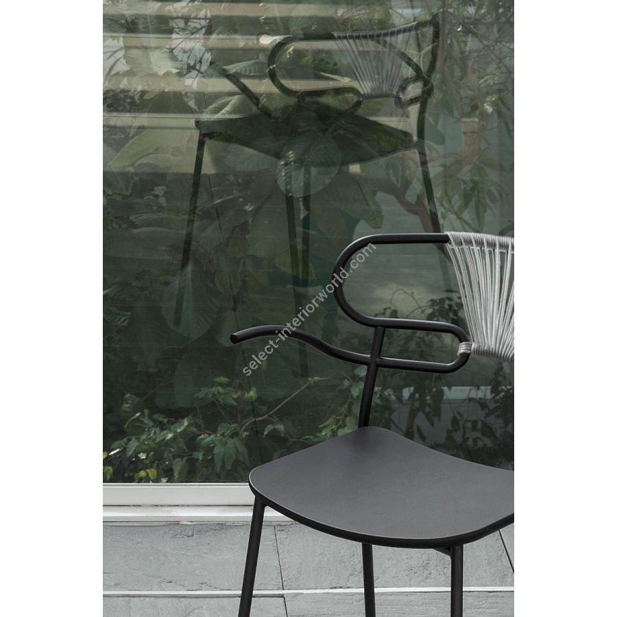 The outdoor version of the chair will be presented at Salone del Mobile 2019. With integral body in polyurethane, mass painted in the mould, it is also available with a woven backrest in coloured rope to enhance both its look and the level of comfort provided.