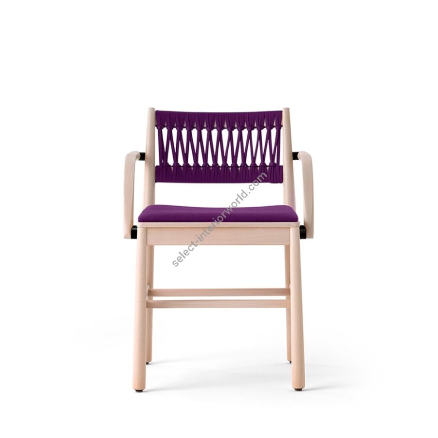 Julie is enriched with the version with armrests, to increase its comfort, enriching a collection that includes the model entirely in beech with seat in exposed plywood, or with seat upholstered and covered in fabric, velvet, eco-leather and natural leather; intertwined leather in the seat and back, or in rope only for the back, are the variants that emphasize the purity of shapes and games of solids and voids, for chairs and stools that are as welcoming as they are versatile.