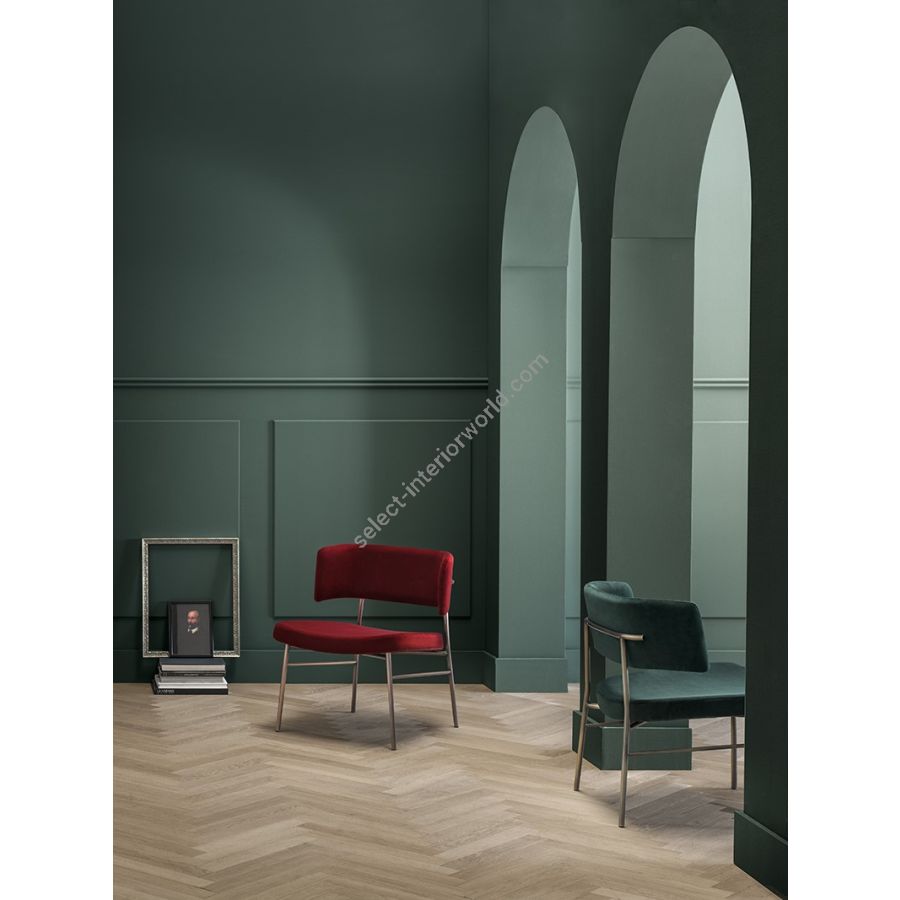 Polished brass or copper add a vintage touch to the colour palette that can be mixed and matched to obtain the perfect chair for residential and tailor-made contract projects alike.