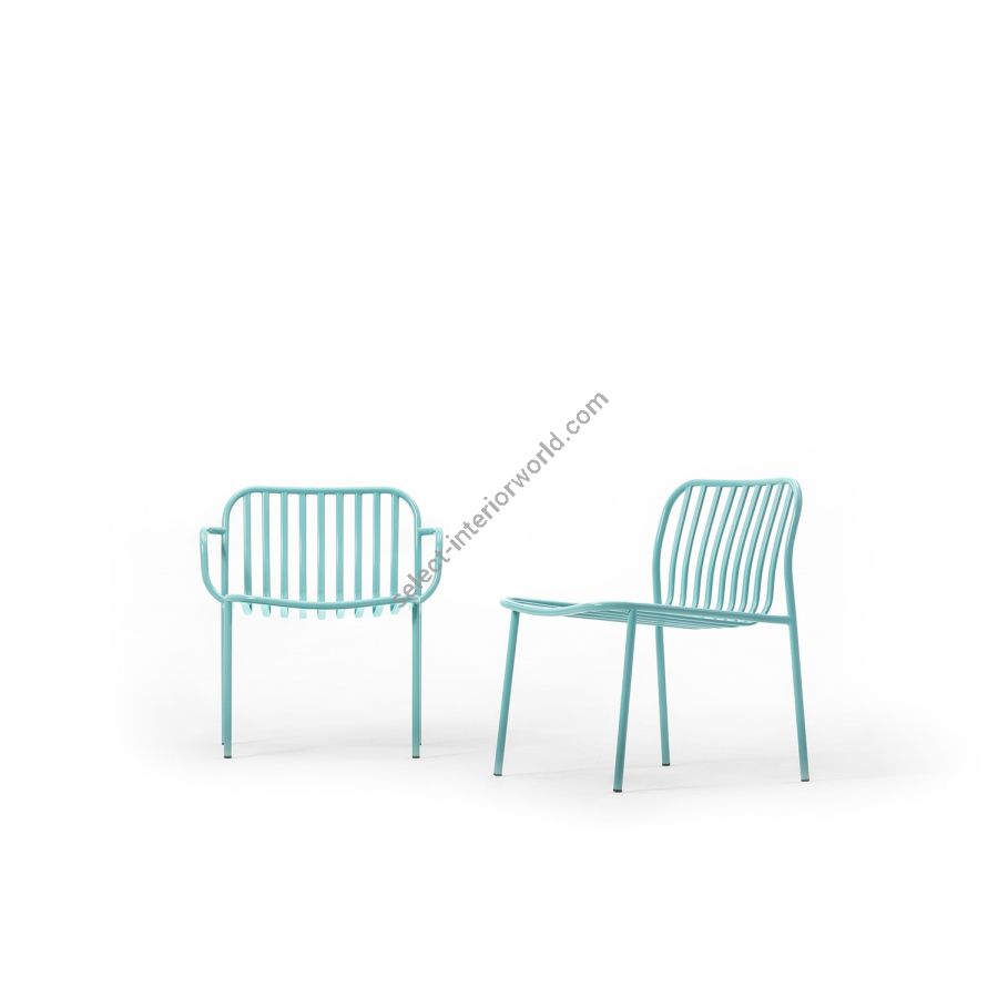 A collection made entirely of metal, with minimalist design and maximum functionality. The backrest and seat of Metis Line feature a wire design with vertical ovals, which sinuously and harmoniously accompany the outline of the frame, adapting to the bodyto ensure comfort. The chair with or without armrests, the lounge version with or without armrests and the stool in two heights bring ergonomic forms and an infinity of colour options to any indoor or outdoor space.