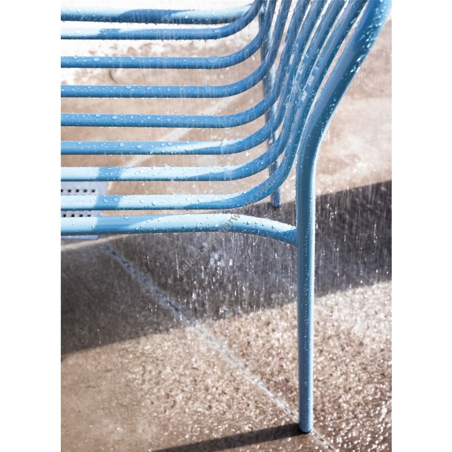 A collection made entirely of metal, with minimalist design and maximum functionality. The backrest and seat of Metis Line feature a wire design with vertical ovals, which sinuously and harmoniously accompany the outline of the frame, adapting to the bodyto ensure comfort.