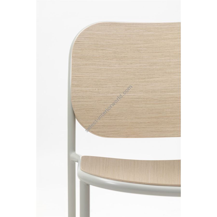A complete collection for modern spaces inspired by 1950s Scandinavian simplicity. The metal frame with curved lines, customisable in different colours, is combined with the seat and backrest in ash, oak or heat-treated oak.