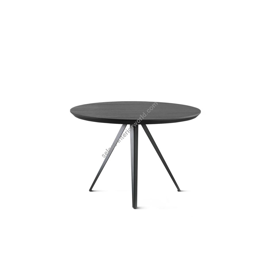 Two new solutions for the AKY table collection, which is enhanced by a tête à tête variant: you can choose between a square or round top, for intimate breakfasts in public environments or to personalise small living spaces. AKY is supported by legs with central meeting point available in wood, combining solid and fluid shapes, or metal, to provide the table with both ascending tension and lightness.