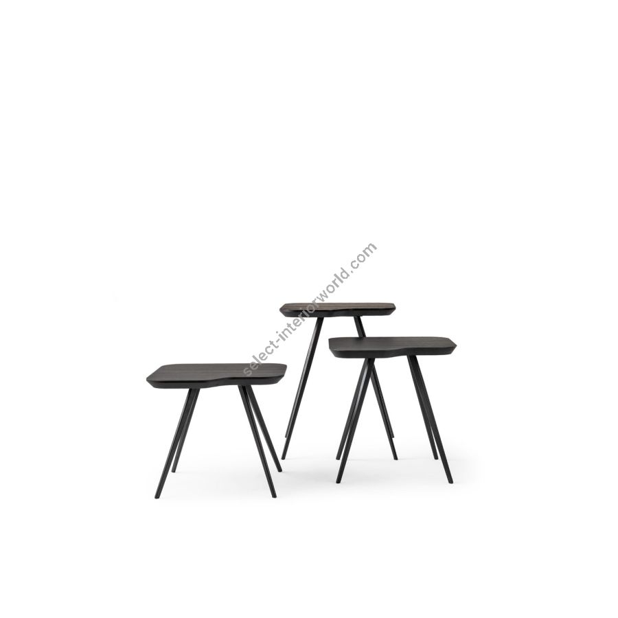 The Aky Small Tables enrich the living room area with a pleasantly minimal look, featuring calibrated dimensions and striking textures. The colour range comes in different finishes: natural ash, bleached ash, cocoa-stained with an open pore finish, and new colour combinations in pastel shades.