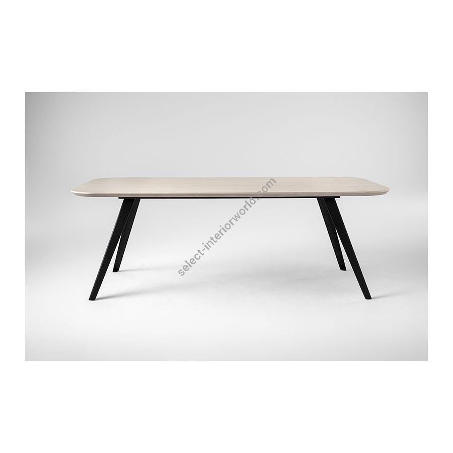 The colour range comes in different finishes: natural ash, bleached ash, cocoa-stained with an open pore finish, and new colour combinations in pastel shades. The top is in ash-veneered MDF, and the frame in solid ash. The collection includes a square, round and rectangular table.