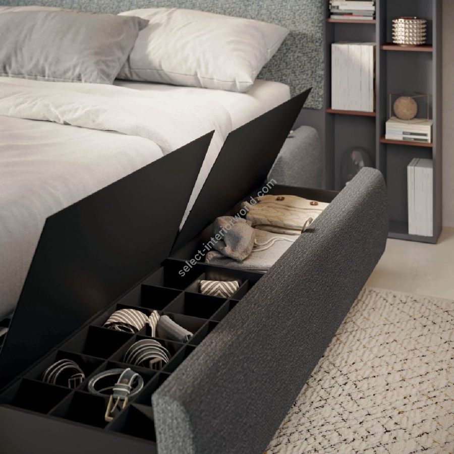 Nest bed allows to create multiple combinations and, together with the large headboard, to fit different accessories, which can be customized in finishes machthing with upholstered pads. The result is a bed, which defines and optimizes the available spaces, with elegance and style.