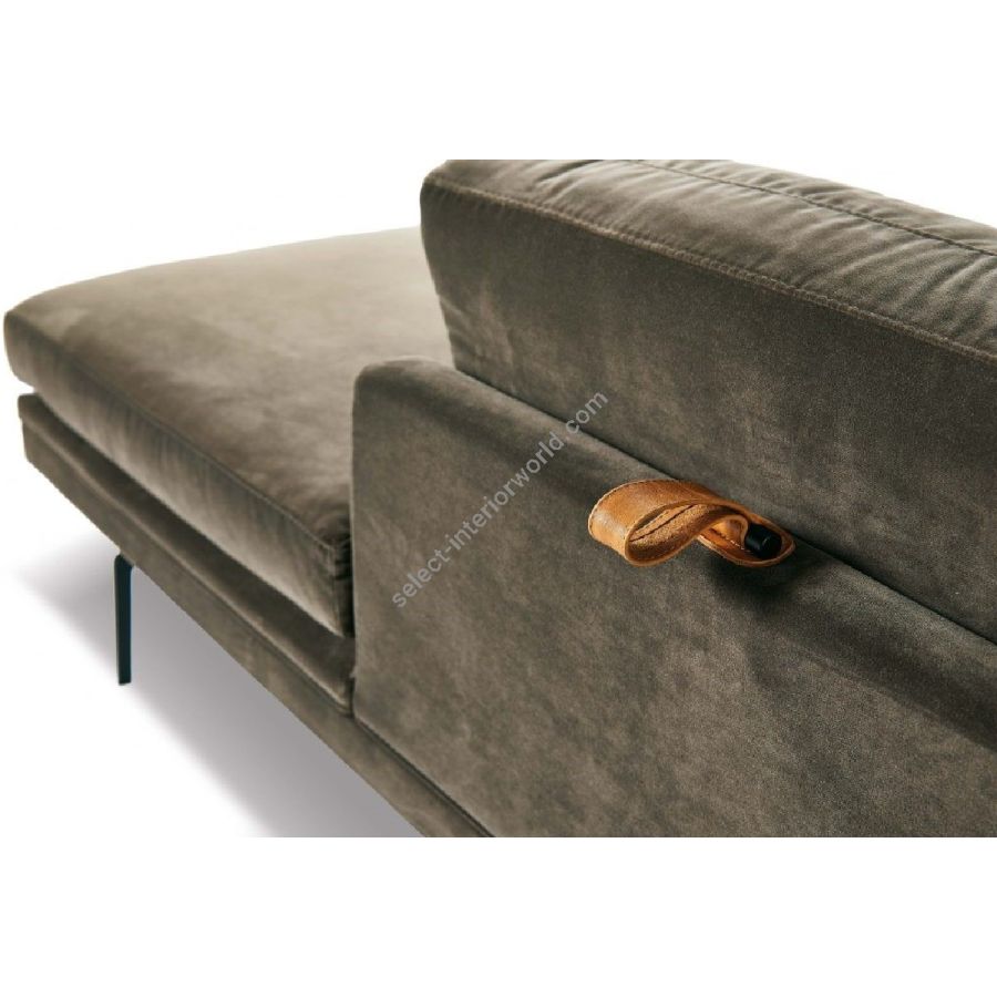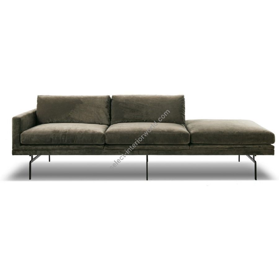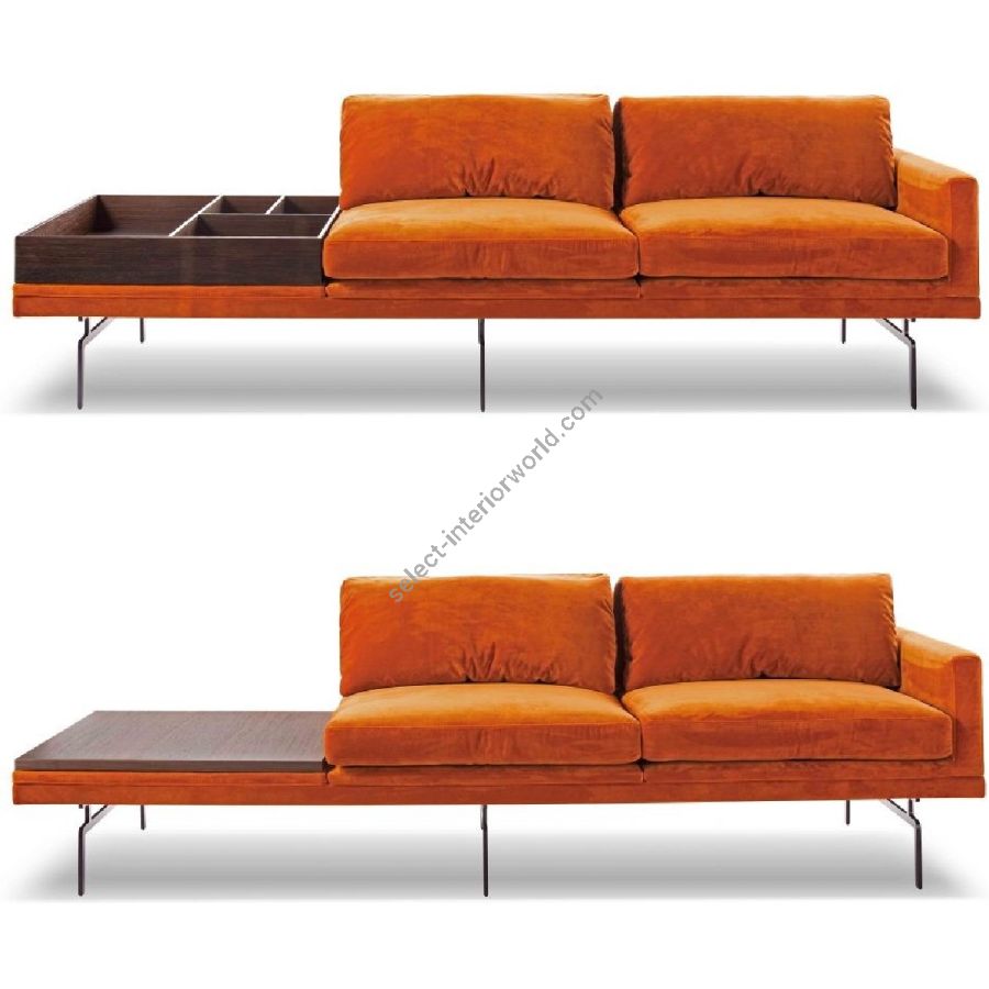 The backs of the sofa and the seat cushions are completely flippable and all the upper structure is reclining. In this way, the sofa can be placed in front of the Block System and Alcova Light.