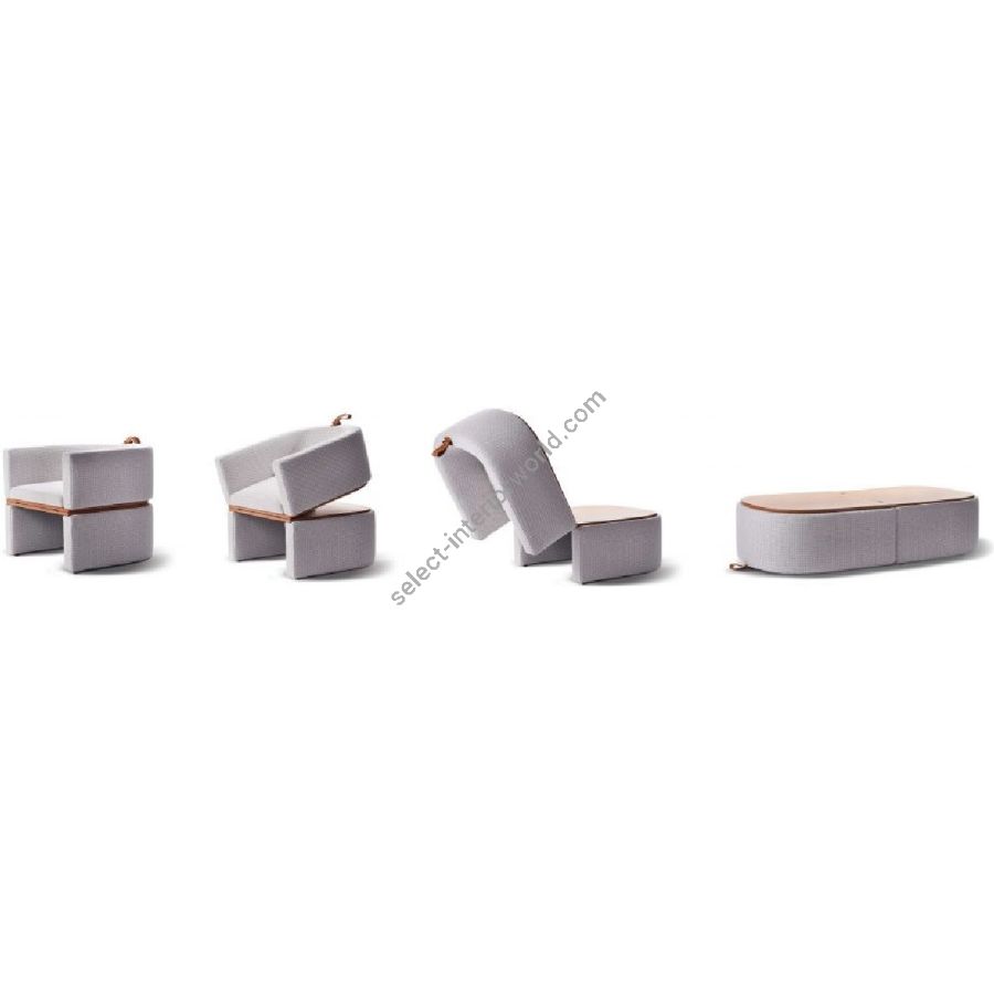 An essential vision of the armchair. The idea takes from the chance to convert a basic piece of furniture making it absolutely one-of-a-kind In a flat surface or a practical bench for two or three guests. The result is a design product, modern and timeless, elegant and technical, with a strong visual impact. Moreover, ABLE is supplied with an upholstered ottoman with convertible top into a coffee table.