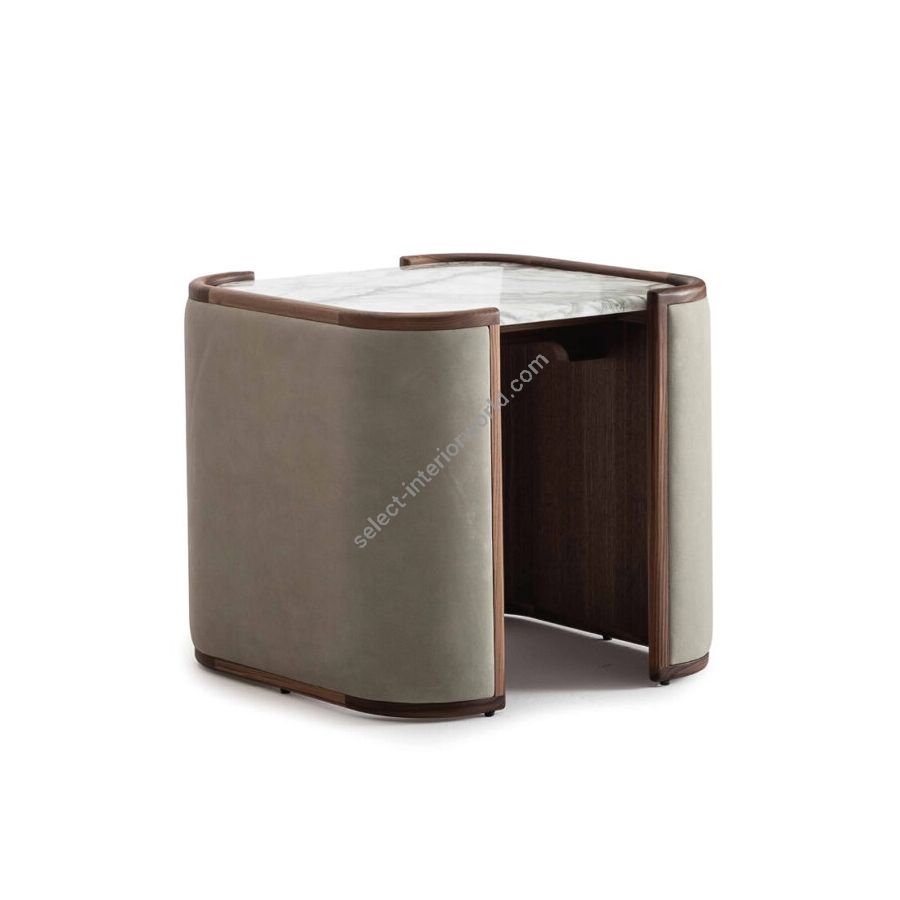 Kalid merges the structural integrity of solid American walnut with the sculptural presence of a marble top, framed by side panels available in either wood or leather upholstery from Ulivi Salotti's curated finish collection. This composition achieves a sophisticated equilibrium between substance and visual lightness, conceived to infuse spaces with distinctive character and polished elegance.