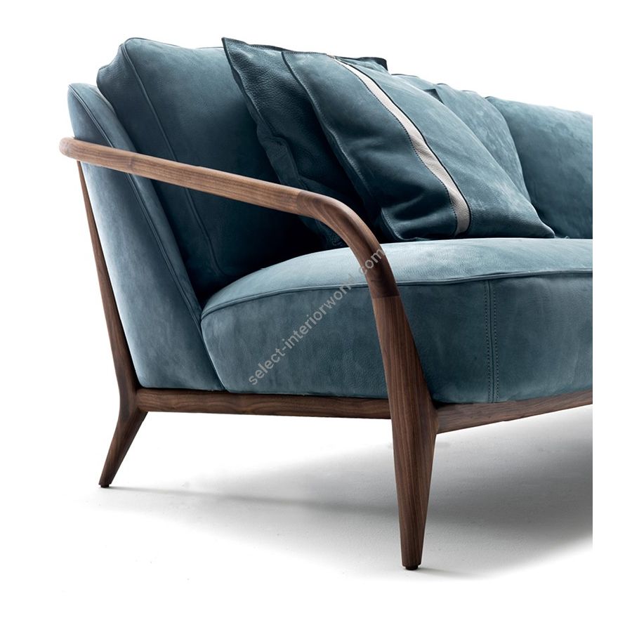 The upholstered backrest in real goose down fits naturally with the fixed cushions of the seat: a combination