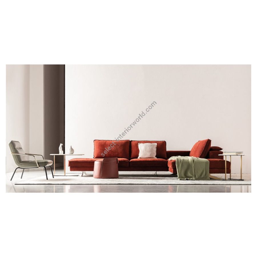 Victor is presented here with the “Grassé” leather, a new category of deluxe leather characterized by great softness and thickness; the photos propose it in the color “Mattone”, one of the brand new exclusive colors of Ulivi Salotti.