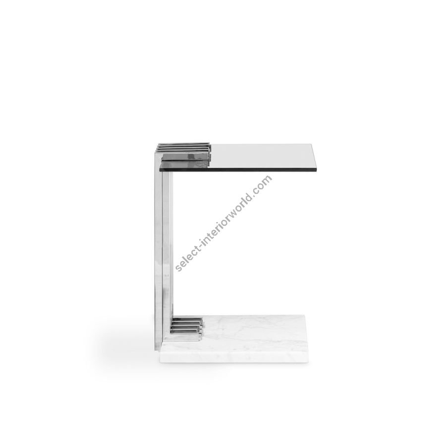 With a sublime shape, this side table is the highest proof of ultimate design. Designed with perfectly crafted marble and stainless steel, this piece creates a unique and sophisticated touch for patio furniture. A fascinating and exclusive outdoor piece that exudes luxury and style. The Vertigo Side Table is the definition of a luxurious outdoor experience.