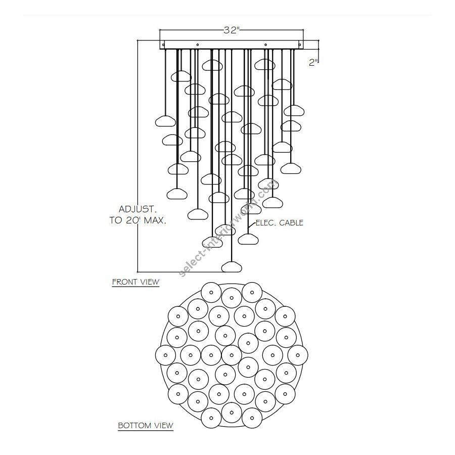 Inspired by one of the largest asteroids in our solar system that continuously orbits the outer reaches of space. Its rocky form has been punished over billions of years since the early formation of our planets. Our glass artisans have recreated this celestial form using a unique technique of freehand glassblowing that creates a ghostlike illumination through the white colored glass. Each handblown, sculptural piece is a unique work of contemporary art hanging from a silver leaf canopy. Approximate blown glass drop dimensions: 5.5″W x 6.5″H.