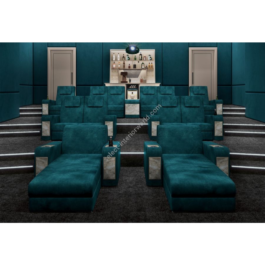 Comfort Home Cinema Chair is characterized by a perfect combination between comfort and refined details, like thick stitching on sight and ergonomic head cushions. The peculiarity of Comfort Home Cinema Chair is the possibility to enrich it with decorative materials placed in the front of the arm: precious marbles, wood inlaid with mother-of-pearl and ebony, embroidered leathers and metallic fiber.