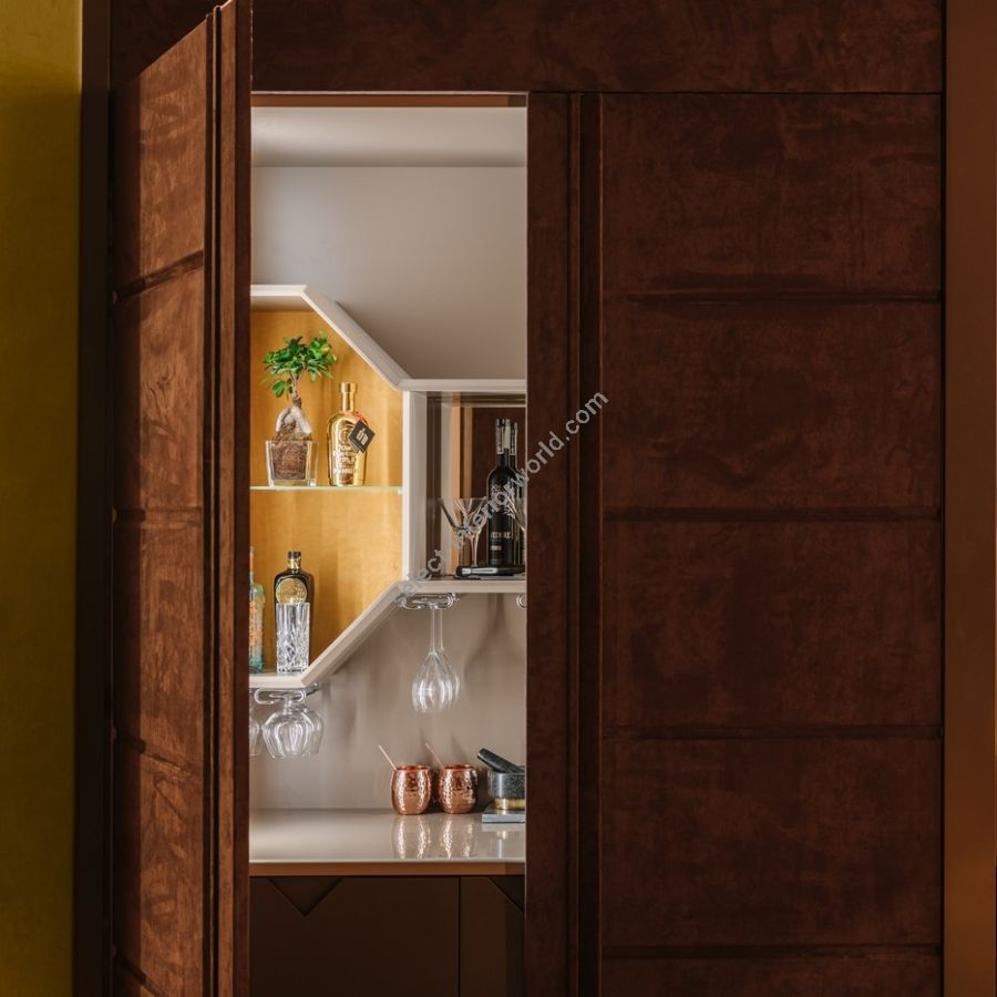 It is a product with an intimate soul, fitted with a special recessed doors system that can cleverly optimize the space while maintaining simple lines and the possibility to conceal everything you may need in a home bar. Once opened, the doors glide sideways to reveal large and well-designed space where to exhibit your finest bottles.