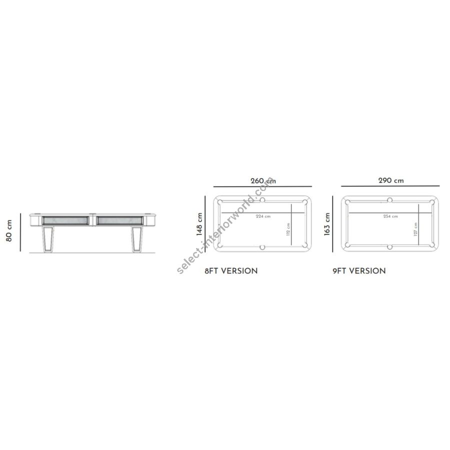 The framework is crafted from solid wood, the playing surface is made of slate sheets and coated with a professional soft cloth, produced by the leading company Simonis. The attention to details is also reflected in the coverage of pockets, rigorously in leather or eco leather.