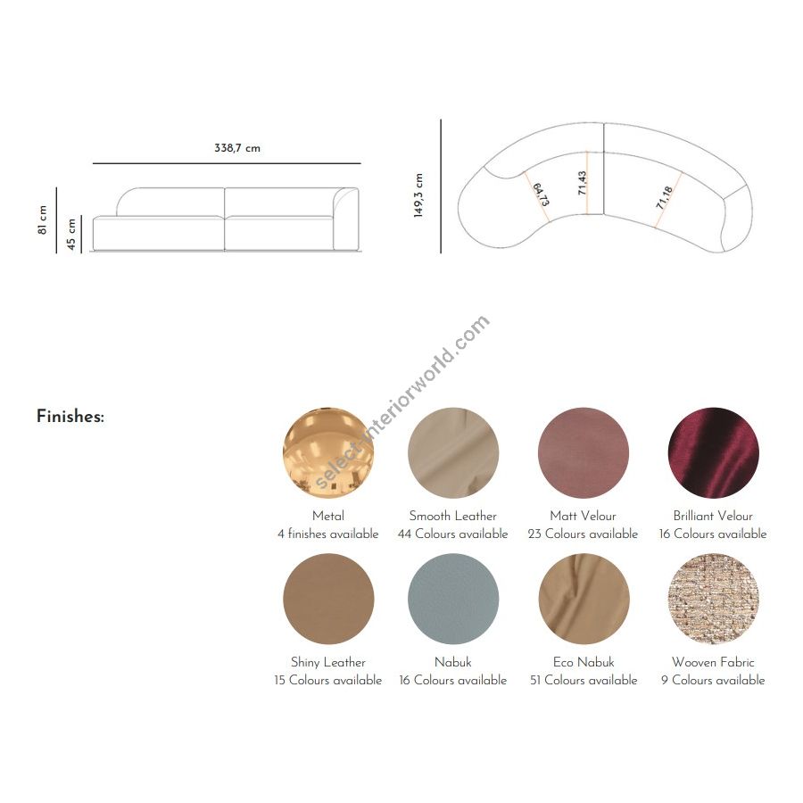 Finish: Metal, Smooth Leather, Matt Velour, Brilliant Velour, Wooven Fabric
