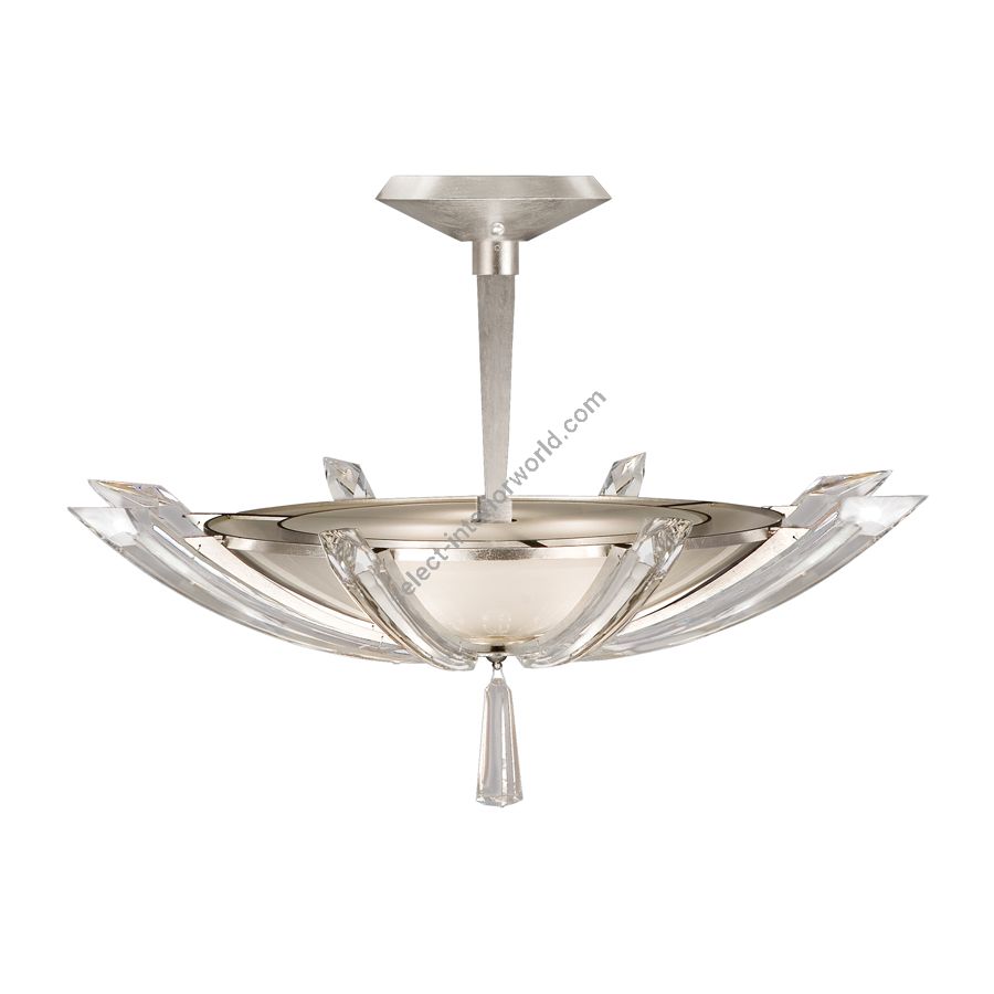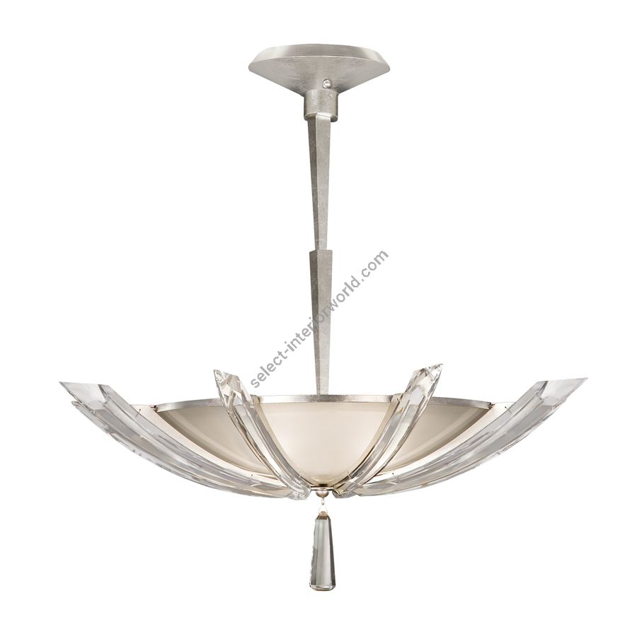 Adjustable pendant/semi-flush featuring graceful sweeps of tapered beveled crystals precisely set in metal wings in a platinized silver leaf finish. Ships standard with 6 six inch links.