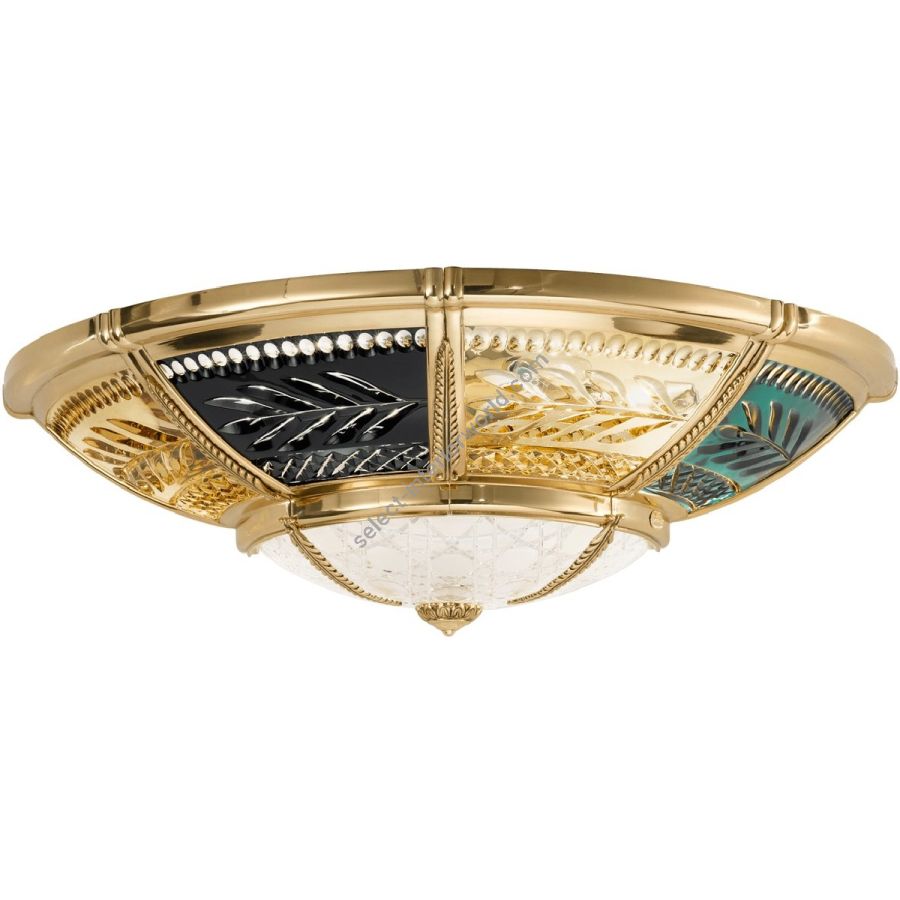 This collection is the most elegant and luxurious version of the Raffaello collection. The panels here are in hand cut crystal in amber and blue / amber colors, and the arms are further completed by pleated organza lampshades in a delicate ivory color. The elegant finish of the brass parts is made of Shaded Gold. Chandeliers, wall lamps and table lamps complete the collection. Possibility to customize the finishes