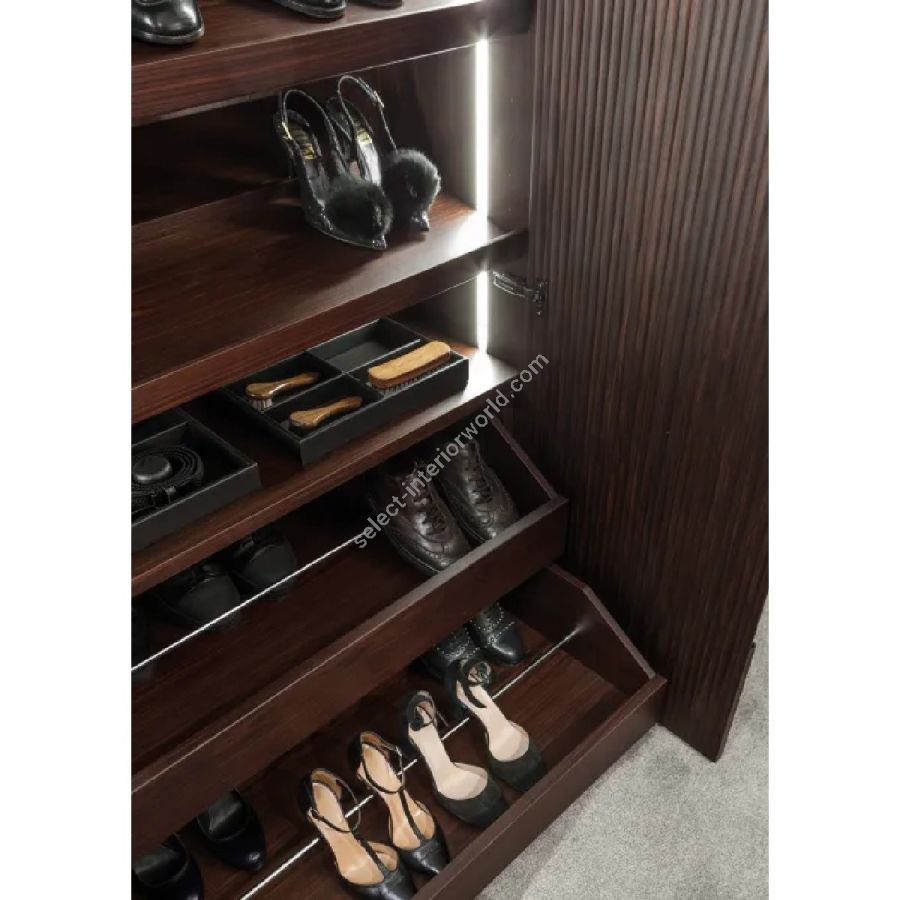Made to measure wardrobe system with Onda carving, customizable in size and finishes. Available tailor-made with customizable accessories, equipment and internal finishes, and with integrated LED lighting.