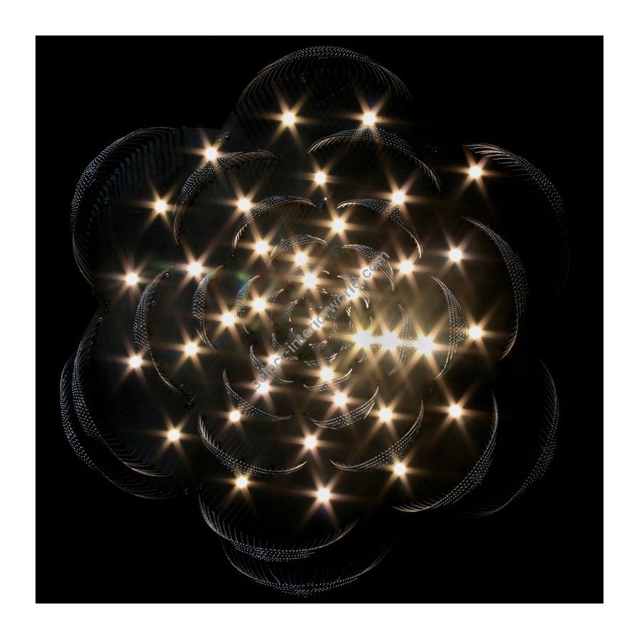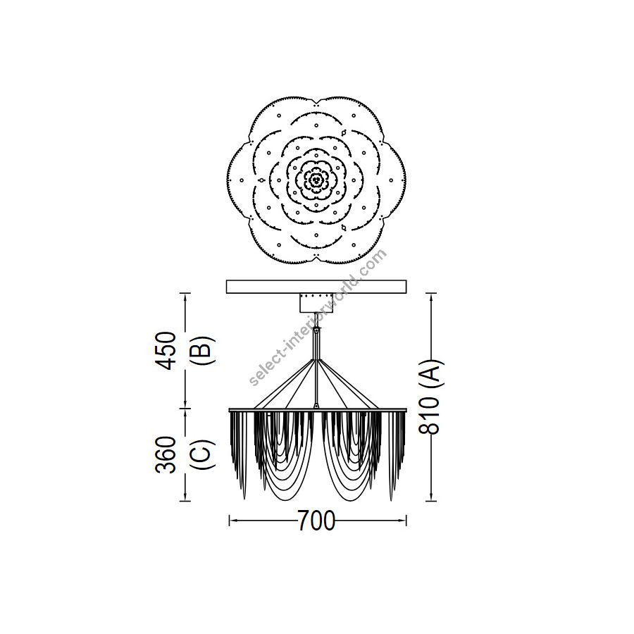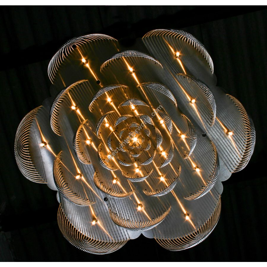A suspended Hi-Tech plate chandelier with chain curtains as `petals` arranged in a layered formation in the shape of a Rose. Available in two optional styles `straight` or `looped`. Available in G4-Halogen or LED
