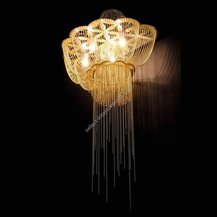 An extension of the existing `Flower of Life` chandelier collection now also available as a matching wall sconce. Illuminated by 5x G9-Halogen or LED lamps.