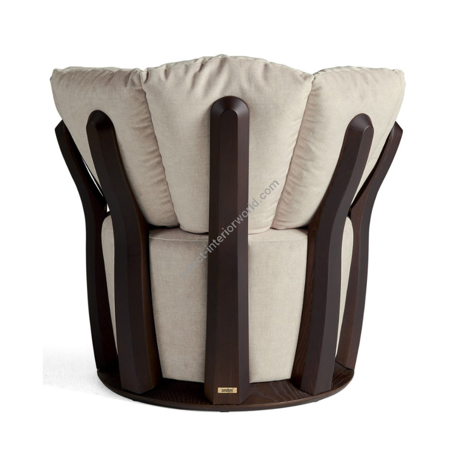 PASSEPARTOUT is a designer armchair with a round seat and solid wood elements that surround it. Its iconic appearance recalls the lightness and grace of a blooming flower. PASSEPARTOUT perfectly represents the values of the contemporary ZANABONI collection, the result of careful research, a harmonious union between present and past, tradition and innovation, to redefine a new domesticity that becomes an interpreter, with a vision of beauty with an unprecedented personality.