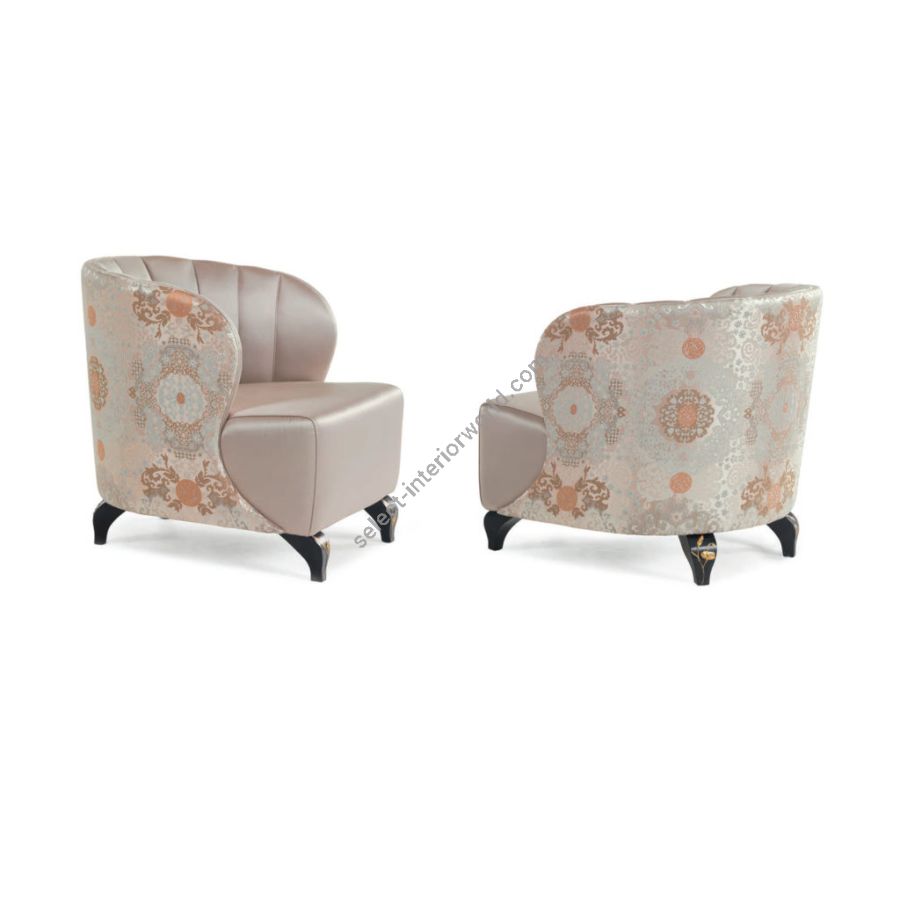 The elegant structure of this armchair is characterised by handcrafted decorations also on the feet.